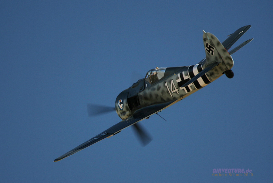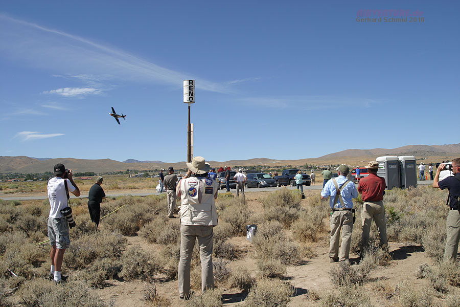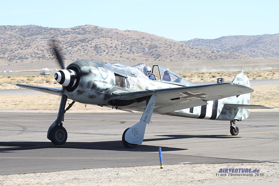 Für viele Fans der Reno Air Races und der Airshowszene insgesamt ging ein Wunsch in Erfüllung als eine FW 190 A-8/N des Bayerischen Flugzeugbauer Flug Werk erstmals an den Reno Air Races teilnahm. Auch wenn der Exot technisch nicht ganz authentisch einen viel zu kleinen Propeller, sowie Wärmetauscher unter den Tragflächen trug, den Zuschauern gefiel's. John Maloney, der den Platz im Cockpit genießen durfte, sicher auch - wenngleich er nur hinterherfliegen konnte...