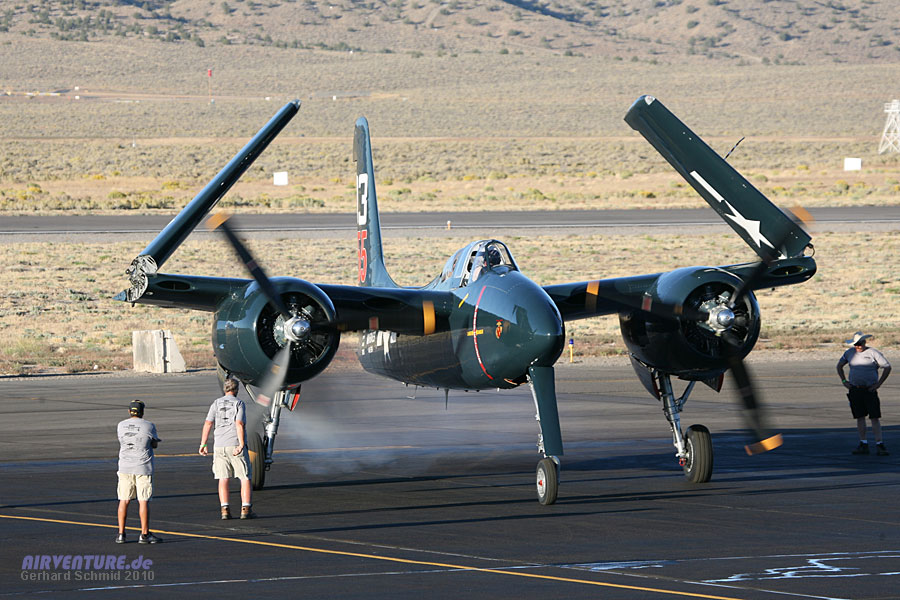 Die mächtigen und zugleich beeindruckend eleganten Grumman Tigercats sind bekanntlich sehr selten. 2003 brachte Michael Brown mit seiner "Big Bossman" zur großen Freude der Fans einen der schnittigen NAVY-Jäger mit nach Reno. Dieses Jahr war mit der F7F-3 "Here Kitty Kitty" eine zweite Tigercat im Rennen. Beide Tigercats gehören inzwischen dem Flugzeugsammler Rod Lewis, ebenso wie die Unlimited Air Racing Legende "Rare Bear" und noch viele, viele weitere seltene Flugzeuge...