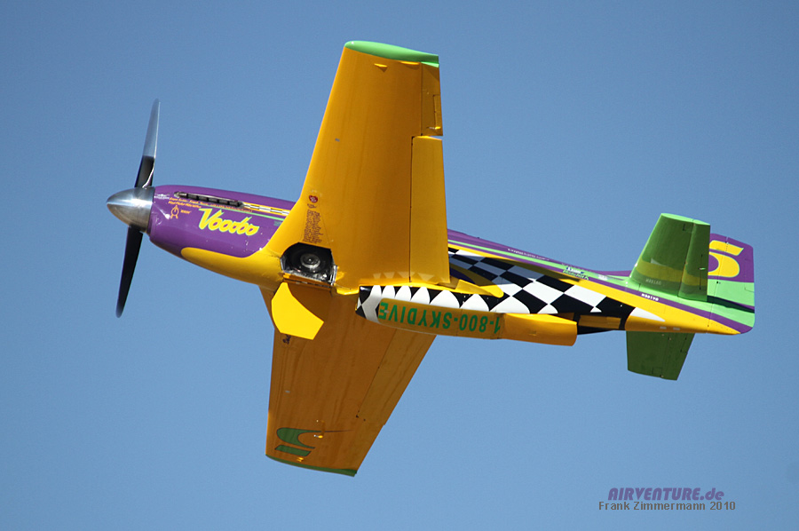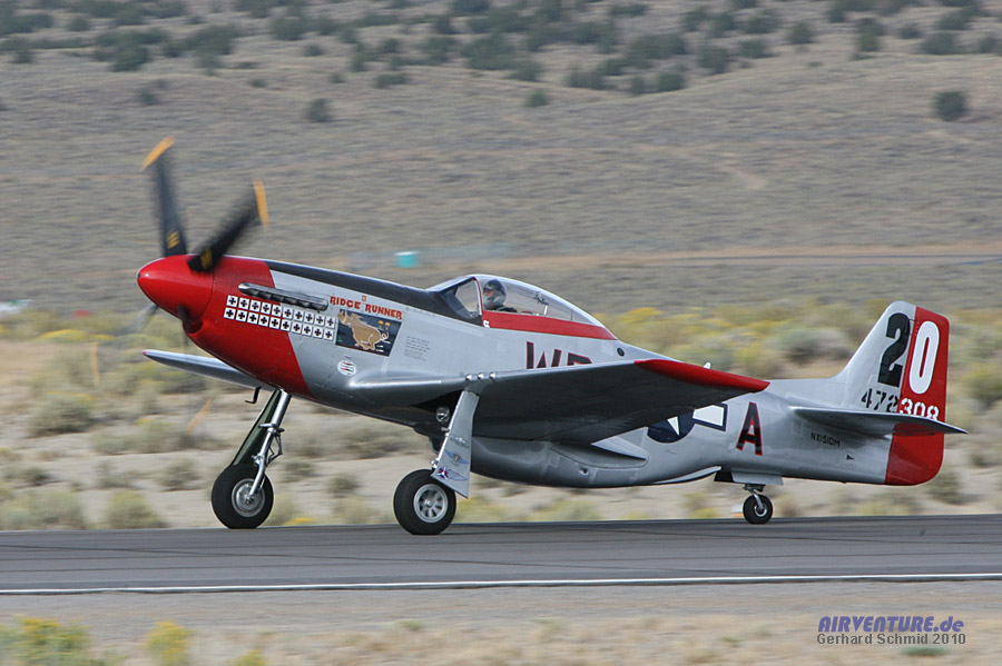 Seit 1979 fliegt Dan Martin mit seiner #20 "Ridge Runner" in der Unlimited Class. Auch wenn man es ihr auf den ersten Blick nicht ansieht - diese Mustang ist mit bis zu 460 mph für vordere Plätze im Unlimited Gold gut. |