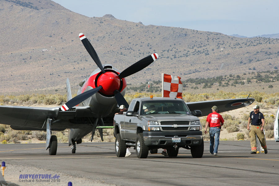 Für viele Fans der Reno Air Races und der Airshowszene insgesamt ging ein Wunsch in Erfüllung als eine FW 190 A-8/N des Bayerischen Flugzeugbauer Flug Werk erstmals an den Reno Air Races teilnahm. Auch wenn der Exot technisch nicht ganz authentisch einen viel zu kleinen Propeller, sowie Wärmetauscher unter den Tragflächen trug, den Zuschauern gefiel's. John Maloney, der den Platz im Cockpit genießen durfte, sicher auch - wenngleich er nur hinterherfliegen konnte...