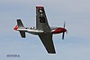 Tief und eng fliegt Stewart Dawson die Tigercat "Here Kitty Kitty" um den Pylon #8, gefolgt von der Mustang "Merlin's Magic" mit Bill Eberhardt im Cockpit. |