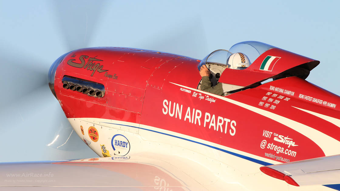 50th National Championship Air Races and Air Show 2013, Reno - von Jan Peters - 2013 hatten die Reno Air Races ihr 50. Jubiläum. Leider gab es bei den Unlimiteds nur 14 Teilnehmer, weil nach Änderungen in Organisation und Preisgeldverteilung die Teilnahme für diejenigen, die nicht zu den allerschnellsten gehören, schlichtweg zu teuer wurde. Auch gab es Änderungen am Reglement, die zwar der Sicherheit dienen sollten, aber nicht aus Sicht aller Piloten dazu geeignet waren. Wer glaubte, dass die Veranstaltung damit unattraktiv für die Zuschauer wurde lag jedoch falsch. Natürlich war die Anzahl der Rennen der Unlimited-Klasse geringer als sonst, aber die Créme de la Créme der stark modifizierten Warbird Racer war zugegen und gab alles. Die Sport Class verzeichnete sogar mit 28 Flugzeugen das bisher größte Teilnehmerfeld. Und alle drei anderen Klassen Formula 1, Biplanes, T6 und Jets waren auch durchweg bunt und spannend. Auch das Rahmenprogramm war wie jedes Jahr gut gemischt. Breitling als Hauptsponsor unterstützte z.B. reichlich spektakulären Kunstflug und die zivile Jet-Formation "Patriots" zauberte eine sehr sehenswerte Show in den Himmel. Aber nun erstmal zu größten Publikumsmagneten, den Unlimiteds: Nachdem Tiger Destefani erklärt hatte seine P-51D Strega nicht mehr (auf eigene Kosten) an den Reno Air Races teilnehmen zu lassen, hatte Steve Hinton jr. - der Champion der letzten 4 Jahre - sich das Cockpit von Bob Buttobs Voodoo sichern können. Matt Jackson gelang es jedoch Sponsorengeld aufzutreiben und Tiger's "Strega" an den Start zu bringen. Nun saß er also erstmals im nachweislich schnellsten Unlimited-Racer der letzen Jahre. Matt Jackson ist als exzellenter Pilot bekannt und schon viele Jahre dabei, konnte jedoch noch nie das Unlimited Gold gewinnen. Nun standen die Sterne günstig und alles sah erfolgversprechend für ihn aus. Aber Reno ist ja auch immer Drama! Stregas Testflüge verliefen makellos und Matt Jackson war guter Dinge, sich für den Anfang in der Liste der Qualifier ganz oben platzieren zu können. Doch dann verabschiedeten sich im Anflug auf seine Qualifyingrunde leider weite Teile des Plexiglases der Cockpithaube von Strega. Drama Baby ! Bei einer IAS von 500 mph (!) sicher keine schöne Erfahrung, die Matt Jackson zum Glück mit nur wenigen Kratzern überstand, so dass er zwar sicher landen aber keine Qualifikationsrunde vollenden konnte. Das bedeutete, dass Strega im Silver-Heat-Race am Freitag vom letzten Platz starten musste, wogegen sich Steve Hinton mit Voodoo mit gut 492 mph aus der Qualifikation bereits die Pole-Position im Gold-Heat-Race am Samstag gesichert hatte. Um mit Strega ins Gold-Heat-Race am Samstag aufzusteigen, hätte Matt Jackson das Rennen am Freitag gewinnen müssen. Und er gab auch mächtig Gas. Rasch waren alle anderen überholt, etliche davon sogar überrundet und Strega kam als erste ins Ziel. Das war wirklich spektakulär. Aber dann kam es: Disqualifikation ! Mehr Drama Baby! Matt Jackson hatte eine der inzwischen sehr knapp gelegten äußeren Begrenzungslinien des Rennkurses überflogen. Um überhaupt noch im Breitling Unlimited Gold Race am Sonntag teilnehmen zu dürfen, gab es also nur noch eine einzige Chance: Einen Sieg im Silver Heat Race am Samstag. Und so kam es dann auch: Matt Jackson startete mit Strega vom letzten Platz, überholte und überrundete alle anderen und gewann. In diesem Rennen erwischte Brent Hisey einen Dead Line Cut und statt einem Startplatz im finalen Gold Race wartete nun erstmal der letzte Startplatz im Silver auf Miss America. Mit einem souveränen Sieg im sehr spannenden Silver Race am Sonntag sicherte sich Brent Hisey auch noch einen Platz im finalen Breitling Unlimited Gold Race. Und dies ist die Liste der Teilnehmer im schnellsten Motorsportrennen der Welt: 1 .Steve Hinton in Voodoo 2. Sherman Smoot in Czech Mate 3. Stewart Dawson in Rare Bear 4. Thom Richard in Precious Metal 5. Brian Sanders in Dreadnought 6. Curt Brown in Sawbones 7. Matt Jackson in Strega 8. Korey Wells in Argonaut und 9.Brent Hisey in Miss America. Vielfältiger und hochkarätiger kann ein Teilnehmerfeld wohl kaum sein. 4 sehr unterschiedliche P-51 Mustangs, eine davon mit Rolls- Royce Griffon-Motor mit zwei gegenläufigen Propellern hintereinander, jeweils eine schwer getunte Yak-11 sowie F8F-2 Bear Cat und drei Sea Furies, mit unterschiedlichen Motoren (R-2800, R-3350, R-4360). Vom siebten Startplatz aus begann Stregas Aufholjagd. Diese führte bis zum zweiten Platz - an Voodoo war kein Vorbeikommen und Steve Hinton verteidigte erfolgreich seinen Titel. Dritter wurde Czech Mate. Eine super Leistung von Sherman Smoot, sich mit der relative kleinen Yak vor den deutlich stärkeren Rare Bear und Dreadnought zu platzieren. Ebenfalls auf großen Beifall stieß Thom Richards Erfolg, genau zwischen den beiden vorgenannten Unlimited-Legenden auf den fünften Platz zu fliegen. Thom Richard, und die Crew von Precious Metal haben sich zu echten Publikumslieblingen entwickelt. Das liegt sicherlich nicht unbedingt nur an den schönen Fotos aus der Breitling-Werbung - aber umso mehr daran, dass aus diesem Team stets sehr offen über die Vorbereitungen auf die Rennen, Flugzeugmodifikationen u.s.w. berichtet wird und der Umgang mit Fans und Gästen immer besonders freundlich ist. Soviel zu den Unlimiteds. Fünf weitere Klassen waren am Start und in allen gab es tolle Rennen zu sehen. Insbesondere in der Formula One geht es immer sehr spannend zu. Wie bei den Biplanes gibt es hier keinen fliegenden Start, sondern das Rennen beginnt bereits auf der Startbahn. Sieger wurde dieses Jahr der Schweitzer Vito Wyprächtiger in Scarlet Screamer vor dem Gewinner der Vorjahre Steve Senegal in Endeavor. 2013 war das erste Jahr für Elliot Seguins neue Wasabi. Und das verlief gleich sehr erfolgreich mit einem Sieg im Silver-Heatrace am Freitag und der Teilnahme am Goldrace. Bei den Biplanes gewann - wie üblich - erneut Tom Aberle mit Phantom.