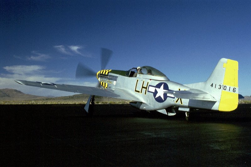 ist eine doppelsitzige Mustangs, zu erkennen an der verlängerten Cockpithaube. Hier