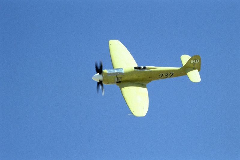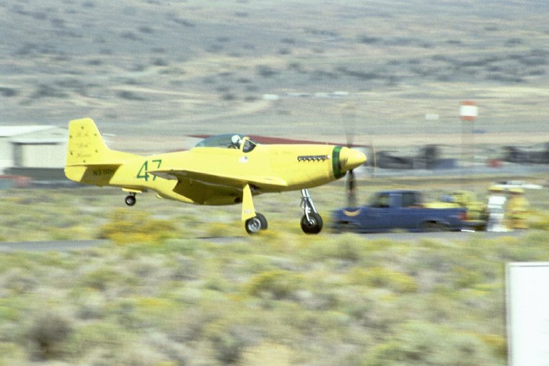 Mustang "Merlins Magic" zum Start um wenig später im Tiefflug um den Rennkurs