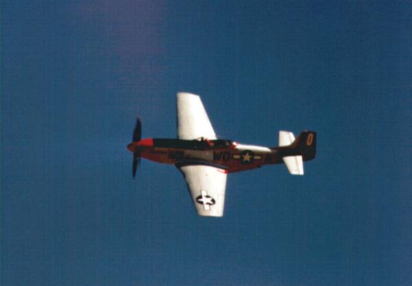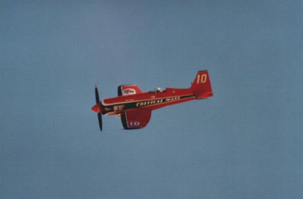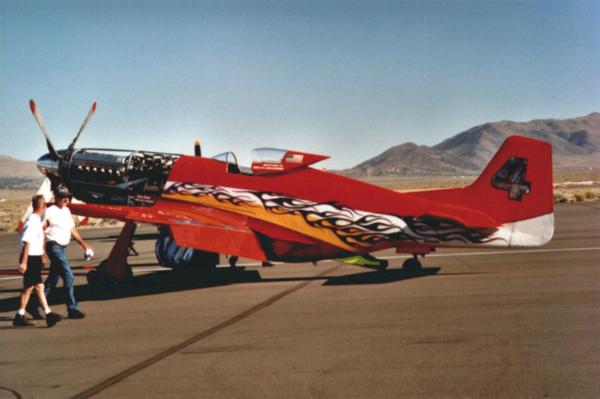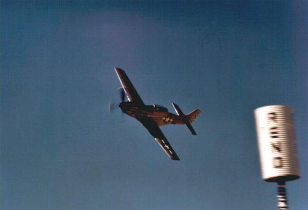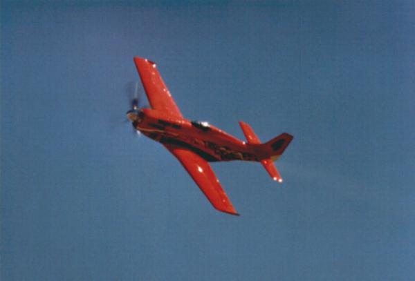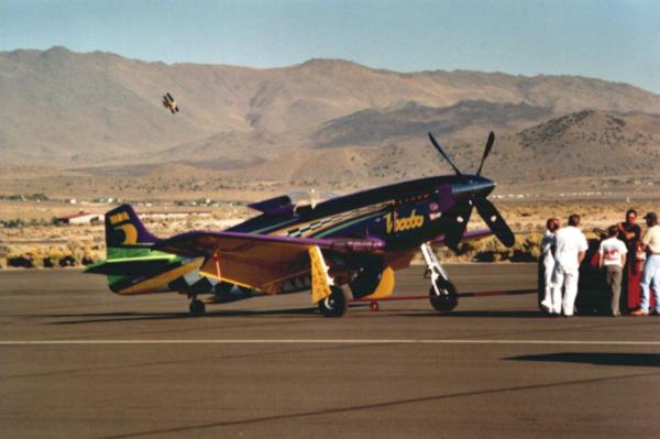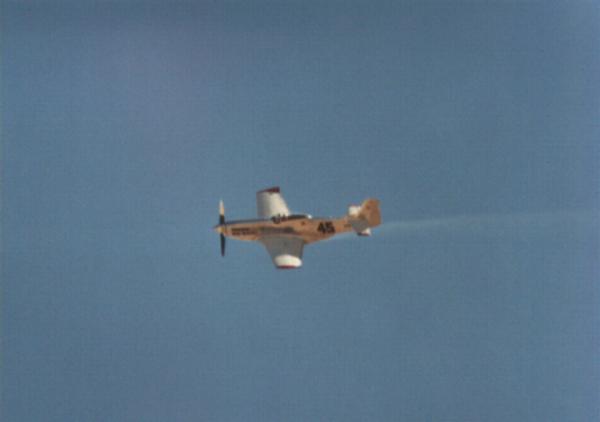 Robert H. Patterson mit seiner TF-51 D #81 "Lady Jo" ist zu erkennen, wie tief
