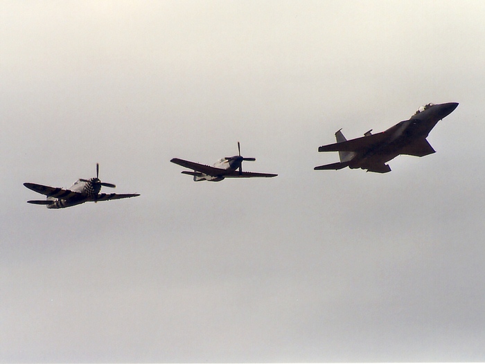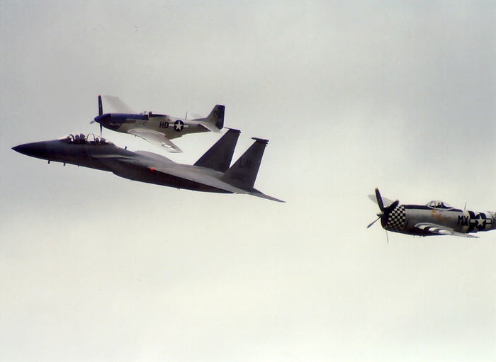 einer F-15 zusammen mit einer P-51D Mustang und einer P-47D Thunderbolt symbolisieren den