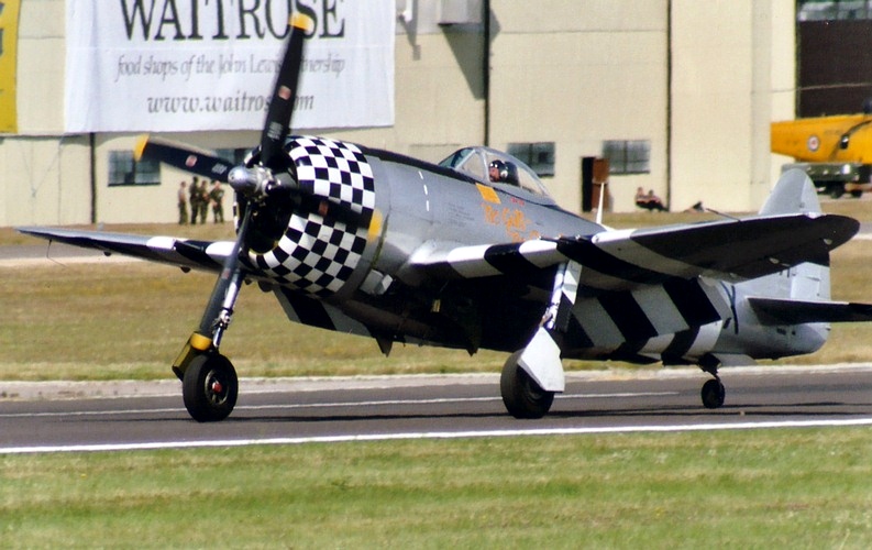 mit der P-47D "No Guts - No Glory", was so viel heißt wie "Kein Schneid -