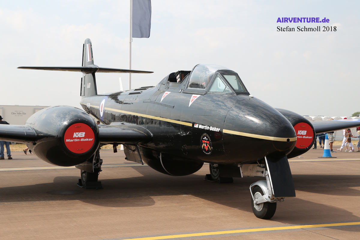 Noch erstaunlicher: Auch die Gloster Meteor ist noch im aktiven Einsatz. Martin Baker nutzt seit Jahrzehnten zwei Exemplare auf dem Flugplatz Chalgrove in Oxfordshire, um die neuesten Schleudersitze unter realen Bedingungen zu testen. |