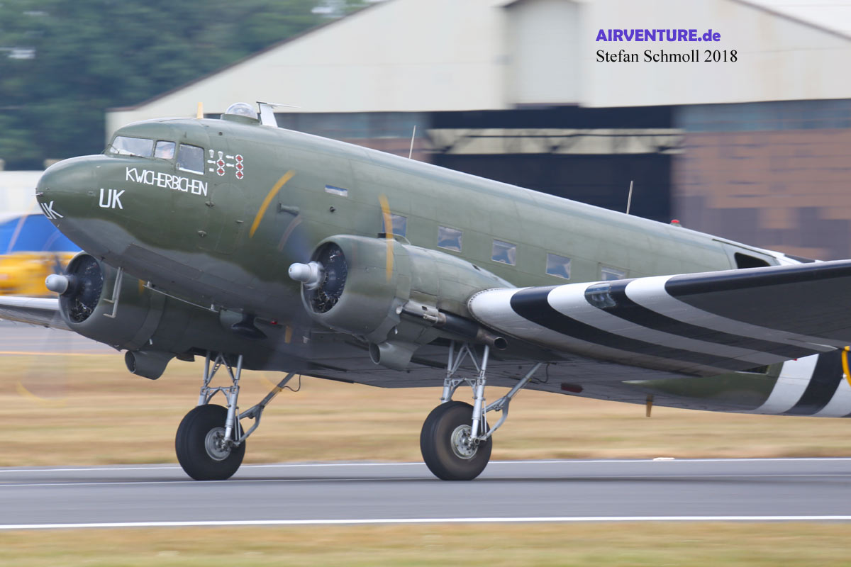 Auch eine Douglas C-47 Dakota gehört seit 25 Jahren zum Team des BBMF. Die ZA947 ist in den Farben einer D-Day Dakota lackiert, die im Juni 1944 während der Invasion der Normandie Fallschirmspringer abgesetzt hat.