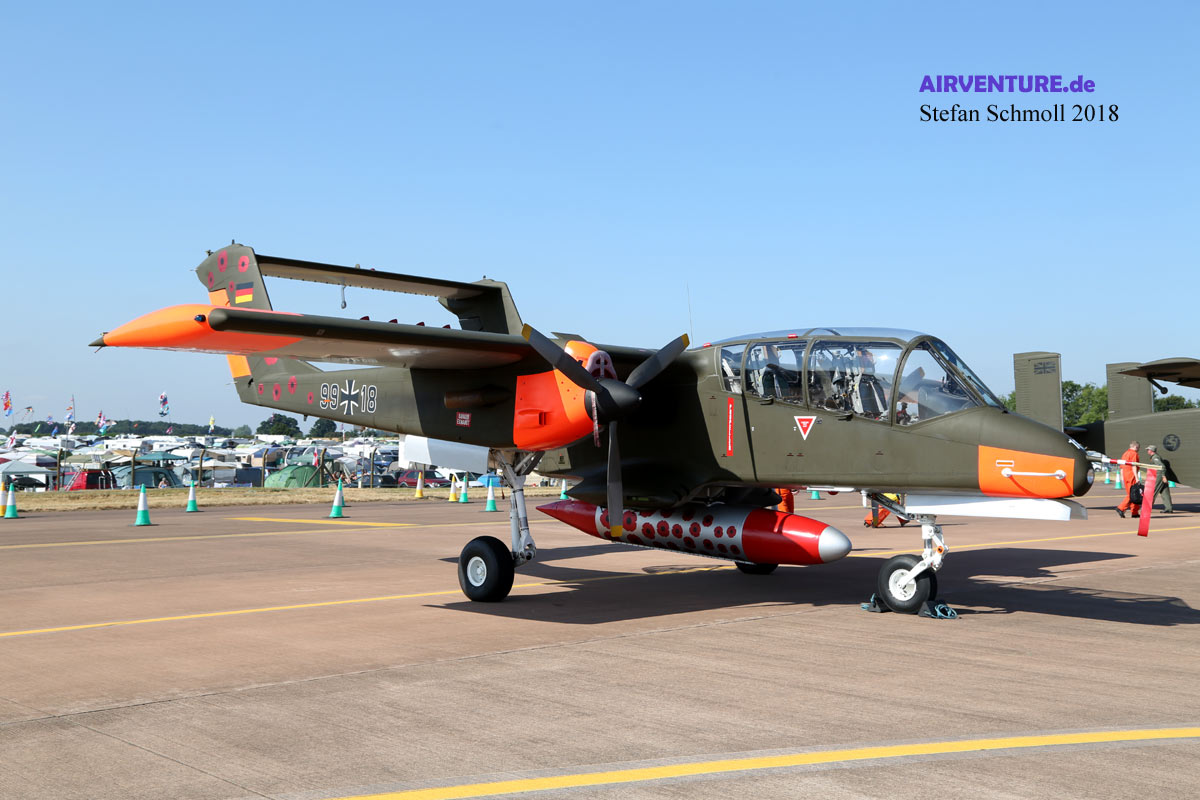 Ein Amerikaner hat sich zwischen die Briten eingeschmuggelt. Aus Belgien flog die Rockwell Bronco nach Fairford. Sie wird seit Jahren von einer Gruppe Enthusiasten um Tony de Bruyn betrieben. http://www.broncodemoteam.com/