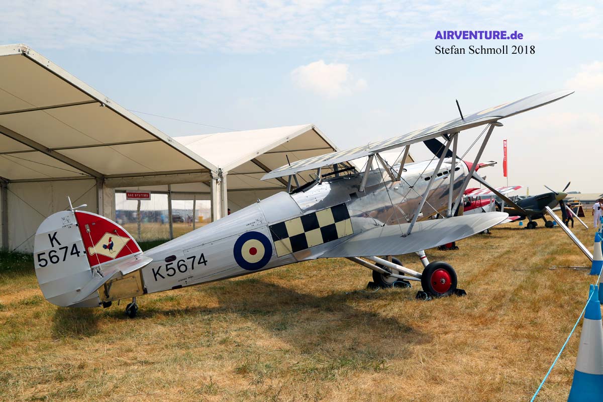 Die Historic Aircraft Collection hat die Hawker Fury gesandt. In den letzten Jahren wurden mehrere Exemplare aus dieser Hawker Doppeldeckerfamilie restauriert, so dass man mittlerweile auch die Vorgängergeneration zu Spitfire & Hurricane live erleben kann. |