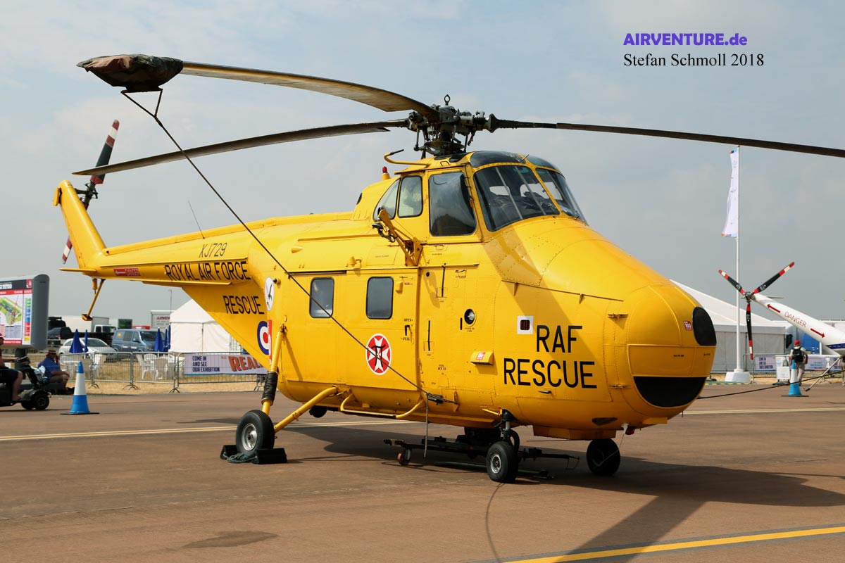 Die Westland Whirlwind war die britische Lizenzversion der amerikanischen Sikorsky S-55 Hubschrauber. Sie wurden später durch Wessex und Sea-King ersetzt, auch in der Rolle der hier gezeigten "RAF Rescue" Hubschrauber. Andrew Whitehouse betreibt das einzige noch fliegende Exemplar. |