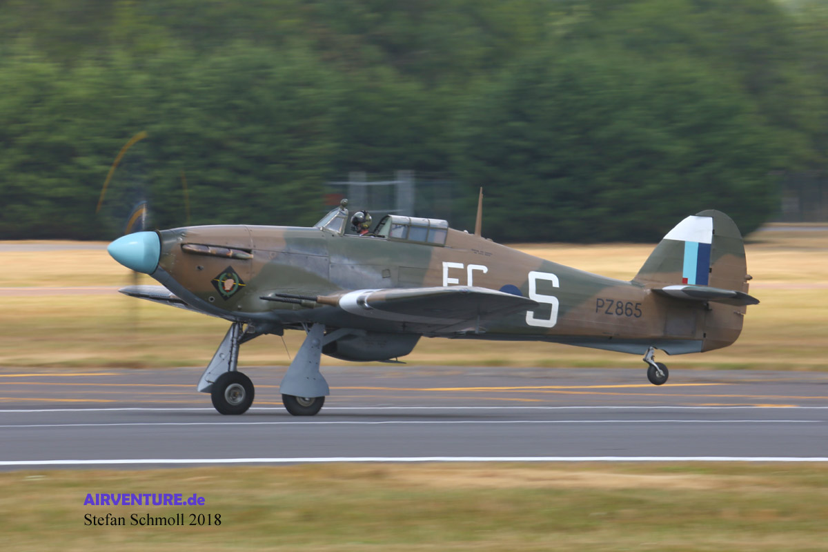 Auch zwei ganz besondere Hawker Hurricane gehören zum Team. Mk.IIc LF363 war die letzten an die RAF ausgelieferte Maschine und PZ865 sogar die letzte von 14583 Hurricanes überhaupt, die 1944 vom Band lief. |