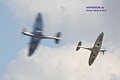 Meistens kommt eine Spitfire vorbei, manchmal auch gemeinsam mit Lancaster und Hurricane. Aber beim RIAT wurden natürlich alle Register gezogen. Da durften es sogar ganz untypische Begegnungen sein - normalerweise ziehen die Flugzeuge nacheinander gemächliche ihre Show ab und fliegen dann zum nächsten Termin. |