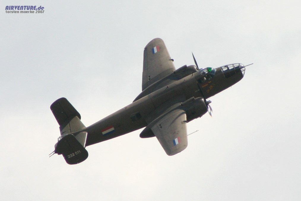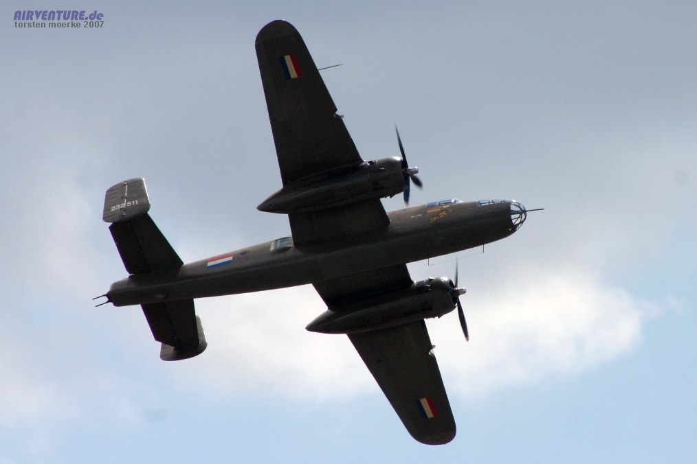 Die Niederländische B-25 war erneut in Hechtel zu Gast und zeigte Ihr gewohntes Display in verlängerter Form.