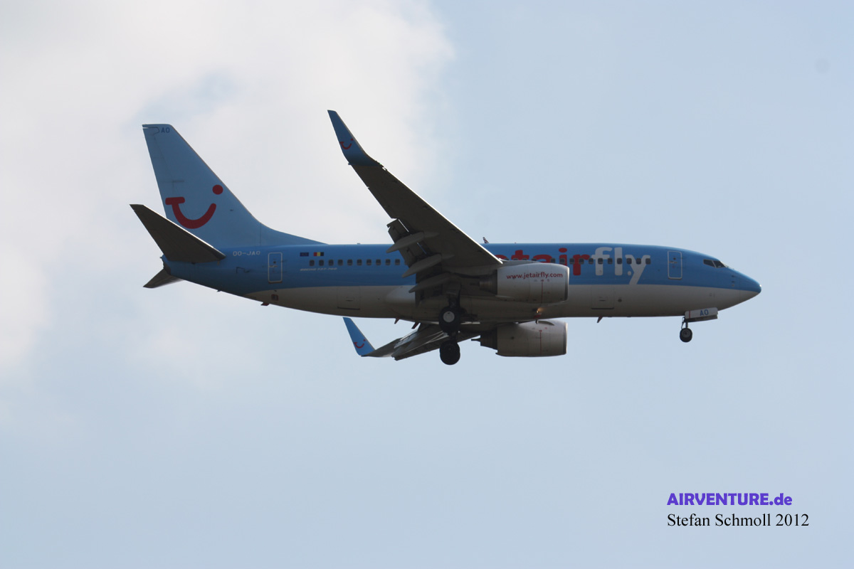 Die JetairFly Boeing 737-700 war bereits mehrfach auf der Sanicole Airshow zu sehen und ist eine der Besonderheiten vor Ort. Schön, dass es auch ziviles Großgerät im Flug zu sehen gibt. |