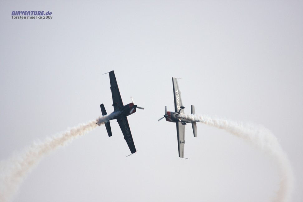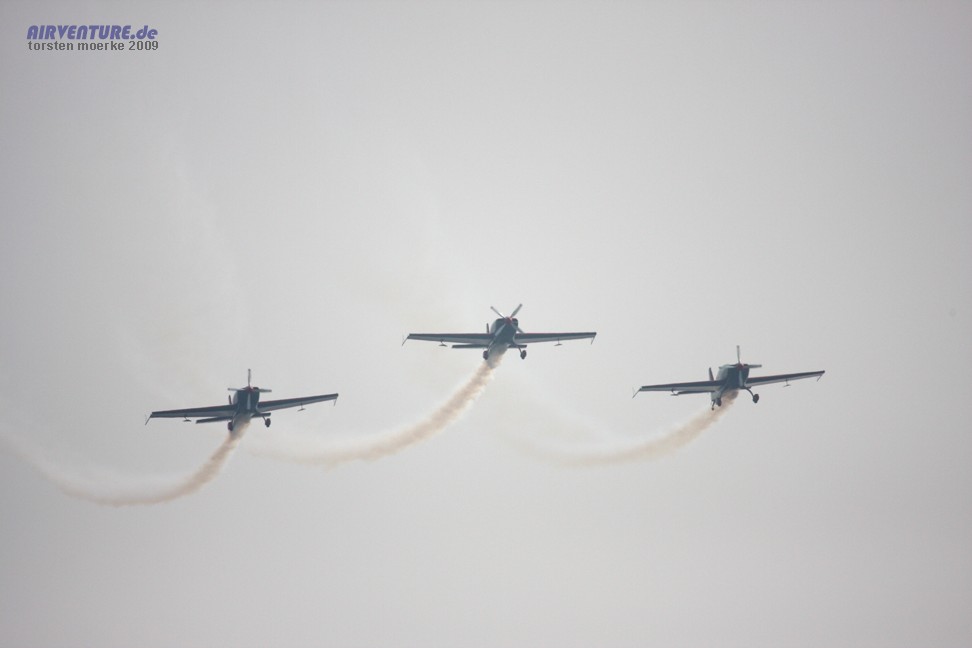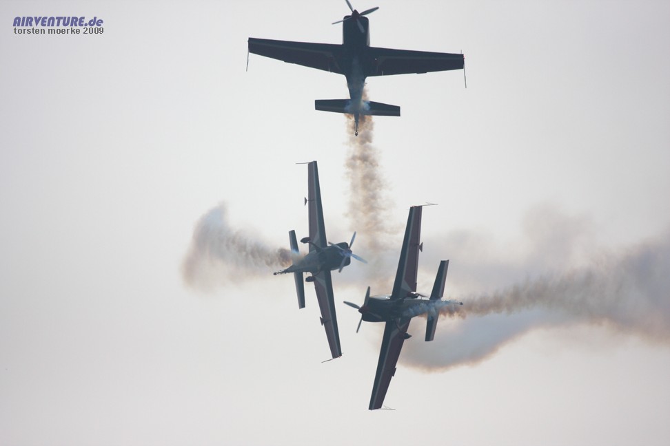 Geflogen werden die Extra 300 allesamt von ehemaligen Red Arrows Piloten. |