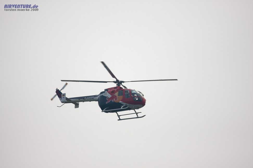 Seit dem Jahr 2005 gehören auch zwei Bo105 CB zur Flotte der Fying Bulls. Beide Maschinen wurden 1974 gebaut und vormals als Polizeihubschrauber eingesetzt. Die Kunstflugvorführung auf der Sanicole Airshow wurde vom Publikum begeistert aufgenommen. |