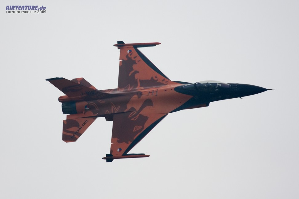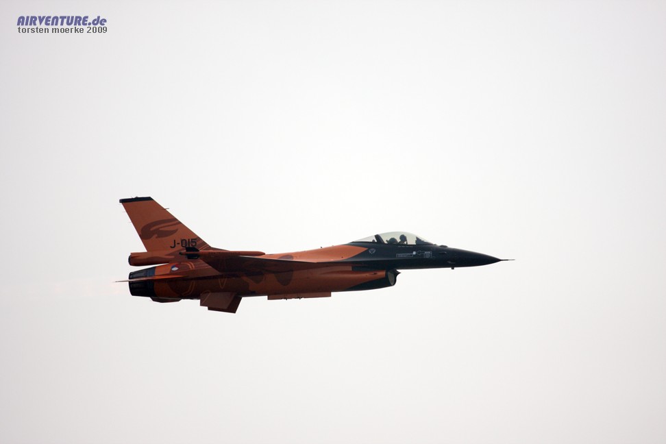 Selbst die leuchtend orange gestrichene F-16 hatte es schwer sich gegen Dunst und Gegenlicht zu behaupten. |