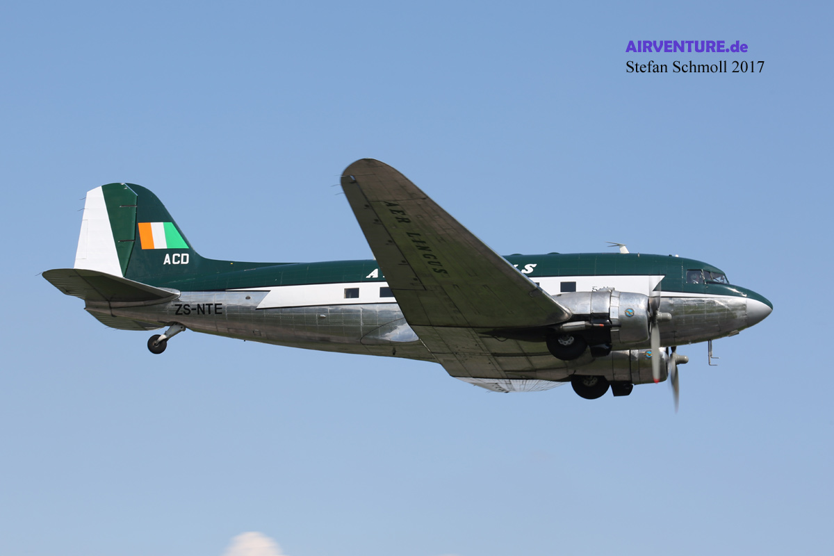 Die Schweizer waren nicht die einzige Premiere in Deutschland. Auch die seit rund zwei Jahren in Zweibrücken beheimatete Douglas DC-3 ZS-NTE trat anlässlich der Airliner-Classics erstmals in ihren neuen Farben auf. In den kommenden fünf Jahren präsentiert sie sich als Aer-Lingus Maschine.