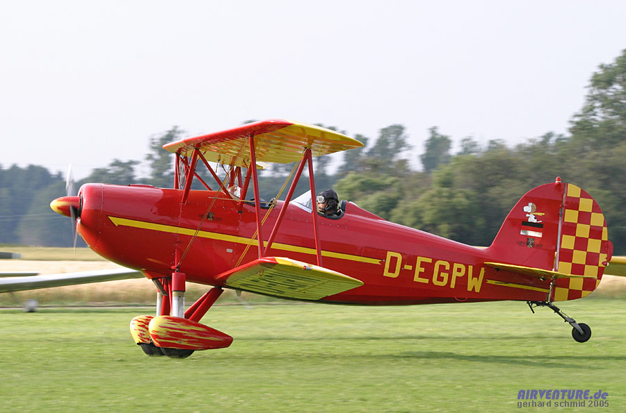 Kunstflugdoppeldecker ist diese 1978 gebaute Great Lakes 2T-1A-1. |