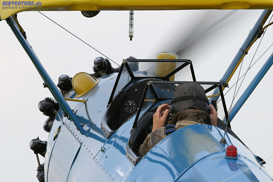 muß erena am Knüppel des Stearman die Schwerpunktverlagerungen ausgleichen. |