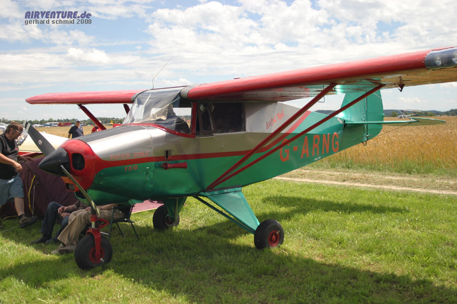 Der Zweisitzer Piper PA-22 "Colt" sieht der Piper "Tri Pacer" recht ähnlich. Die Farbgebung dieser Colt 150 aus England entspricht vielleicht nicht mehr ganz dem Auslieferungszustand... |