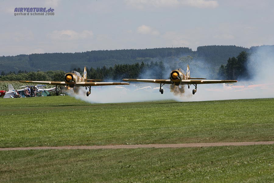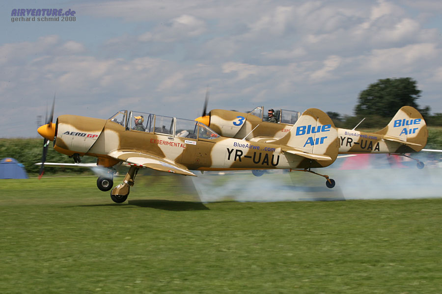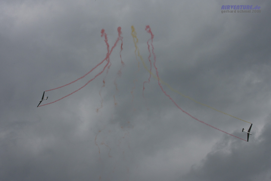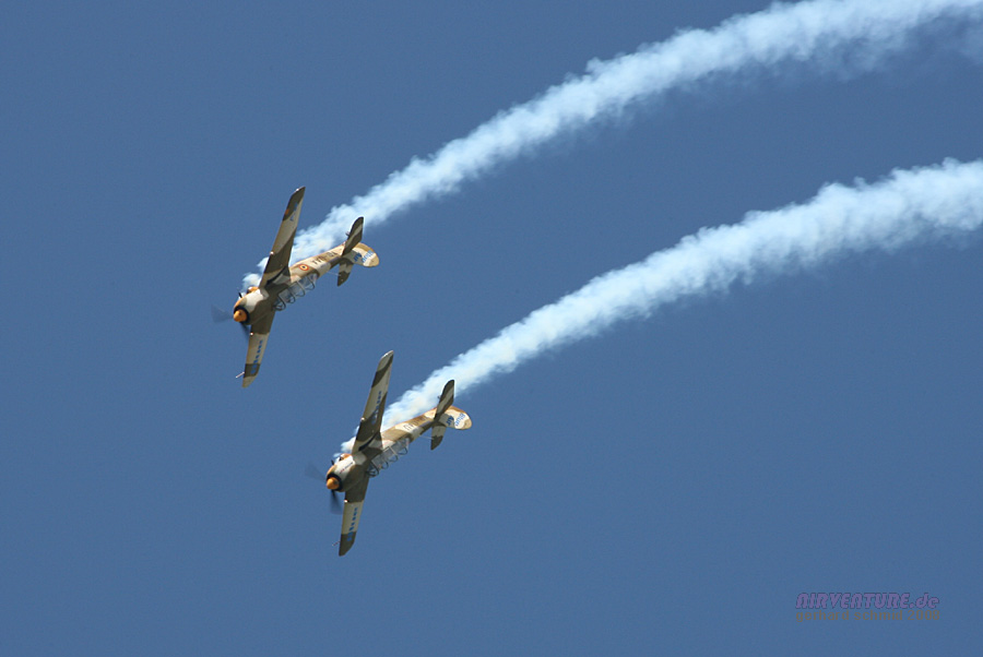 Iacarii Acrobati, das rumänische Yak 52 TW Team hatte nicht nur viel Rauch sondern auch sehr schönen Formationskunstflug zu bieten. Für die Damen gab's sogar ein Herz . |
