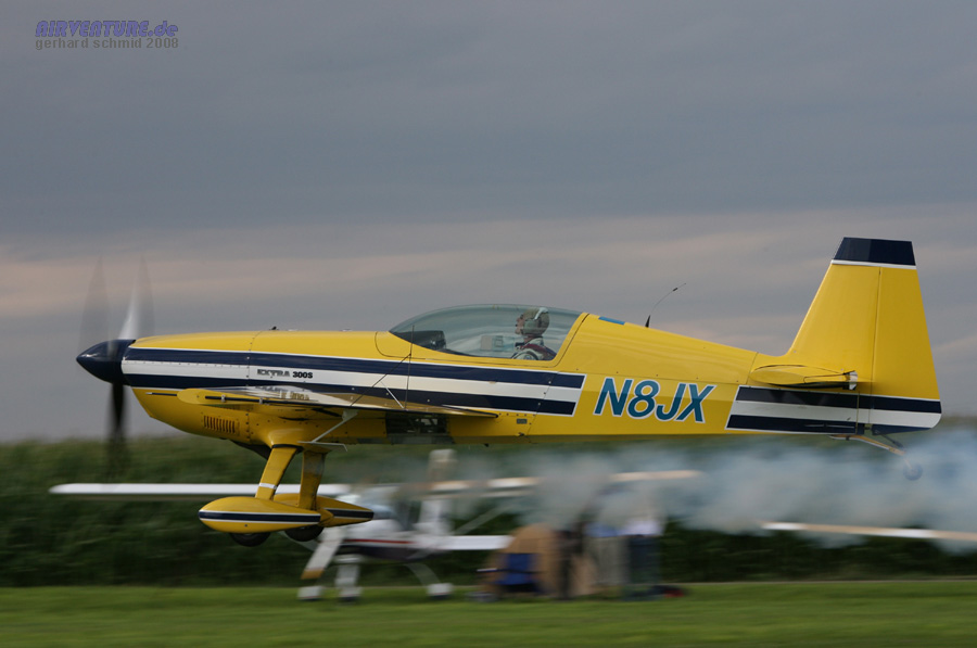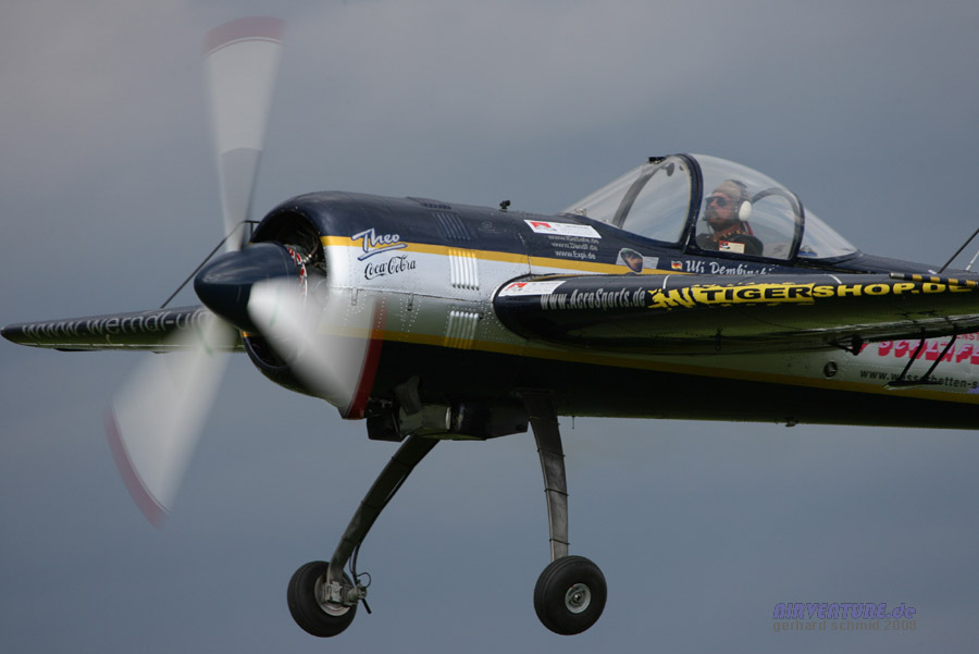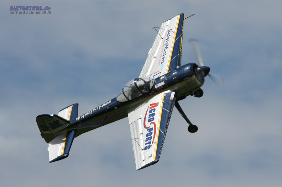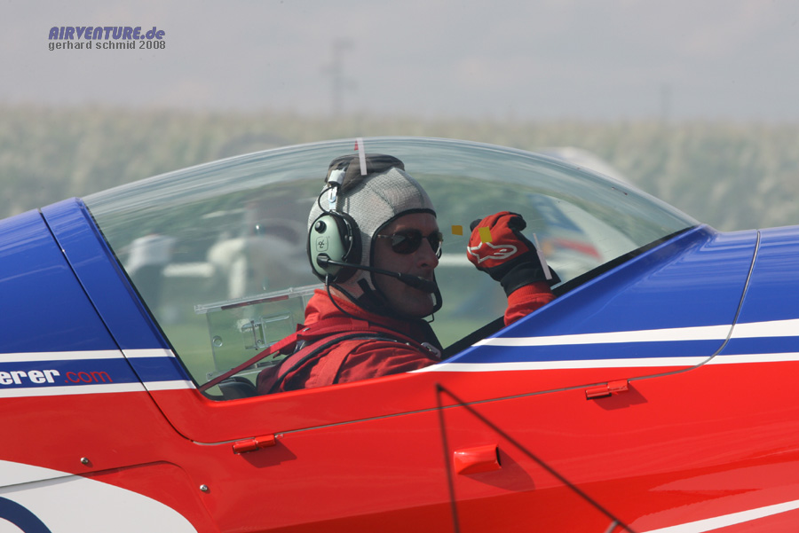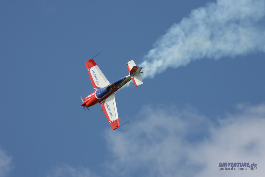 Das Publikum war begeistert von Matthias' Darbietung. Er bewegte Walter Extras neuestes Produkt 330 SC in einer sehr dynamischen Performance am Himmel über Tannkosh. |