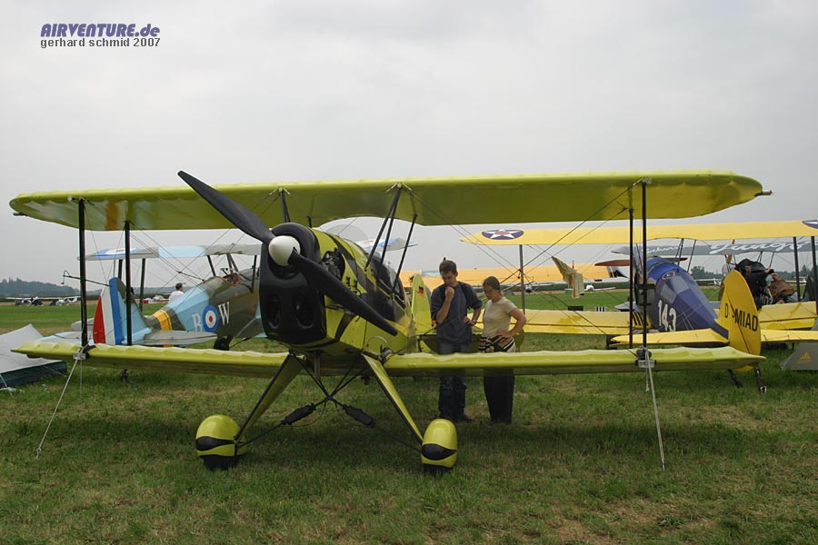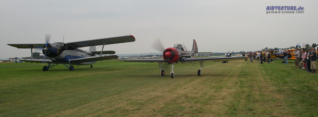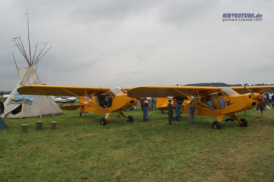 Tannkosh 2007 - von Gerhard Schmid - Oshkosh, das alljährliche Fly-In der Experimantal Aircraft Association (EAA) und größte Fliegertreffen der Welt ist jedem Luftfahrtinteressierten ein Begriff. Zwar hat das ebenfalls jährlich stattfindende Tannkosh Fly-In auf dem süddeutschen Flugplatz Tannheim (EDMT) noch nicht ganz die Dimensionen des Vorbildes am Lake Michigan erreicht, doch wird dem Event längst international Beachtung geschenkt. So hat sich jüngst Tom Poberesny, der Sohn des EAA-Gründers Paul Pobereszny und heutiger Präsident der weltumspannenden Organisation, in Tannheim eingefunden um die Tannkosh-Veranstalter Verena und Matthias Dolderer kennenzulernen. Nachdem sich beim Fly-In 2006 bereits etwa 1.300 Teilnehmer in das Gästebuch eintragen konnten, war die Bereitstellung von Stellflächen für die wachsende Zahl an Flugzeugen eine Herausforderung. Noch verkehren keine Busse, wie man das von Oshkosh kennt, doch wer alle Flugzeuge sehen will, der sollte gutes Schuhwerk mitbringen. Allein das Besichtigen aller Maschinen auf der Südseite des inzwischen zu ansehnlicher Größe gewachsenen Areals dürfte für couch potatoes mit Muskelkater enden... Deutlich gewachsen ist auch die Anzahl der Aussteller, der Shops und der Angebote für das leibliche Wohl. Es wurde seitens der Veranstalter alles getan um das Tannkosh Fly-In 2007 zu einem spannenden Ausflugsziel zu machen - ob für Piloten, Fliegerfans oder auch die neugierige Familie, die mit Kind und Kegel im Auto angereist kam. Verena und Matthias Dolderer haben mit ihrem Team grossartiges geleistet. Man darf gespannt sein auf Tannkosh 2008 - hoffentlich bei etwas besserem Wetter.