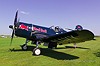 Und noch einmal die Corsair OE-EAS nach dem Abheben auf der Piste 27. Im Hintergrund sind Teile der nördlichen Flightline zu erkennen, mit ihren geparkten Fliegern und Zelten. |