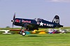 Der Lokalmatador Matthias Dolderer in der Red Bull Corsair F4U-4 auf dem Weg zum Rollhalt Piste 09. Sein Flying Display mit dieser tollen Maschine ist immer wieder ein Genuss. |