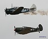 Im Flugprogramm der Temora Aviation Museum Flying Days im April 2010 wurden immer mal wieder verschiedene interessante Zweierformationen gebildet. Auch Matt Denning mit der CAC Boomerang und Doug Hamilton mit der Spitfire Mk XVI zeigten einen solchen gemeinsamen Vorbeiflug. |