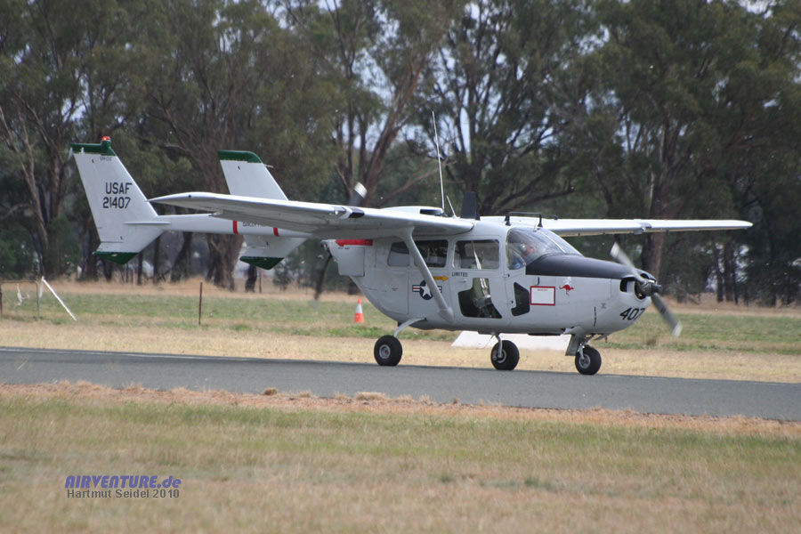 Mit der Cessna O-2 werden nicht nur Flugvorführungen gezeigt, sondern die Maschine dient dem Temora Aviation Museum auch als Transportflugzeug für Personen und Material, wenn sich das Museum mit Flugzeugen aus seiner Kollektion an anderen Airshows in Australien beteiligt. |
