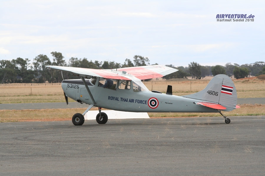 Ebenfalls im Flugprogramm der Temora Aviation Museum Flying Days im April 2010 zu sehen war diese Cessna O-1 Bird Dog. Die Maschine trägt einen Anstrich der Royal Thai Air Force. |