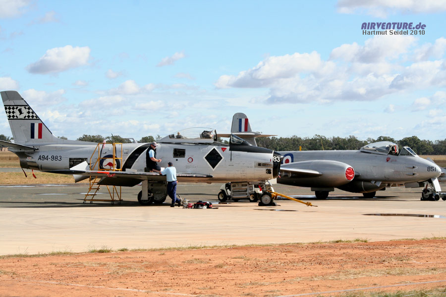 Im Vorführprogramm der Flying Days im April 2010 wurde die CAC Sabre von dem RAAF Squadron Leader Paul Simmons gesteuert. Squadron Leader Simmons ( genannt "Simmo" ) fliegt im Dienst normalerweise die McDonnell Douglas F/A-18 Hornet und war auch schon der RAAF Hornet Solo Display Pilot. |