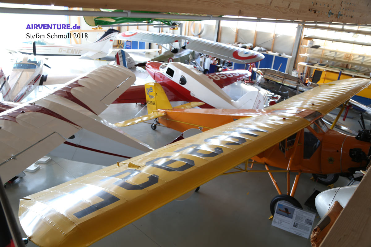 Lautlos geht es auch - und so haben sich die Antique Aeroflyers eine Slingsby T.21 gekauft, die sich platzsparend unter dem Hangardach parken lässt. Von dem urig aussehenden doppelsitzigen Segler wurden ab 1948 92 Exemplare für die fliegerische Grundausbildung britischer Militärkadetten gebaut.