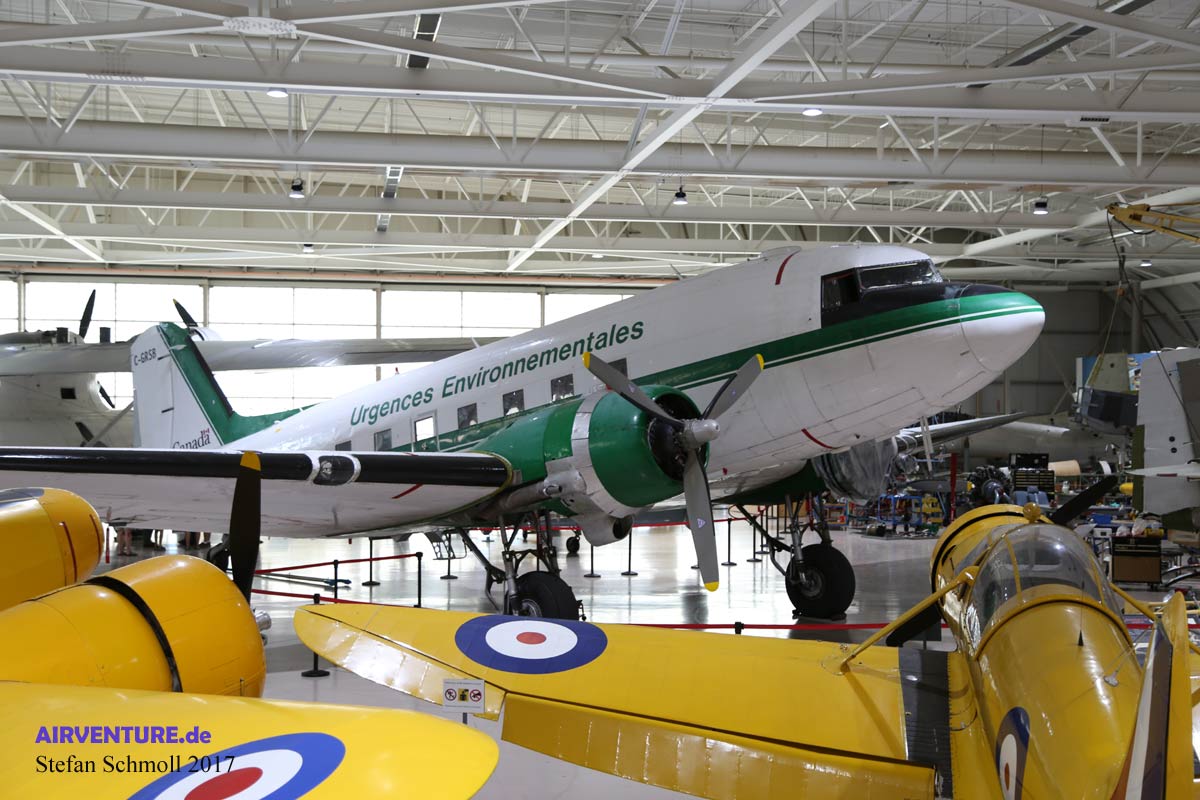 Auch wenn die C-GDAK militärische Farben trägt, ist es doch eine echte Douglas DC-3. Sie wurde 1939 mit der Seriennummer 2141 für Eastern Airlines gebaut und wurde dem Museum 1981 gestiftet. Mit 82.000 Flugstunden ist sie eine der meist geflogenen Exemplare des Typs überhaupt! |