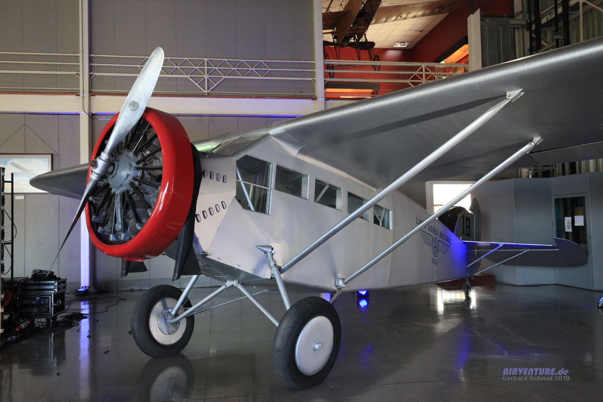 Diese einzige erhaltene LAN 18 ist der Nachbau der Fairchild FC-2W2 aus dem Jahr 1929. Die Weltwirtschaftskrise ließ keine großen Investitionen zu, so baute die chilenische Airline Linea Aérea Nacional die Maschinen nach und rüstete sie mit einem 450 PS P&W Wasp Motor aus. 6 Exemplare entstanden so 1934 und flogen bis 1939.