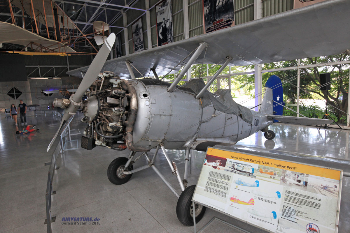 Dies ist kein Stearman sondern die vermutlich letzte existierende Naval Aircraft Factory N3N-1. 1944 erwarb die Chilenische Luftwaffe vier Stück als Trainer für künftige Kingfisher-Piloten. 1950 ausgemustert diente die ausgestellte Maschine bis 1980 beim Santiago Gliders Club und Valparaiso Air Club als Schleppflugzeug für Segelflugzeuge ehe sie an das Museum gespendet und restauriert wurde. Heute ist sie ein nationales Denkmal.