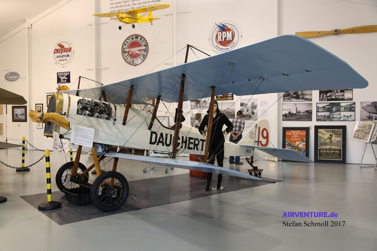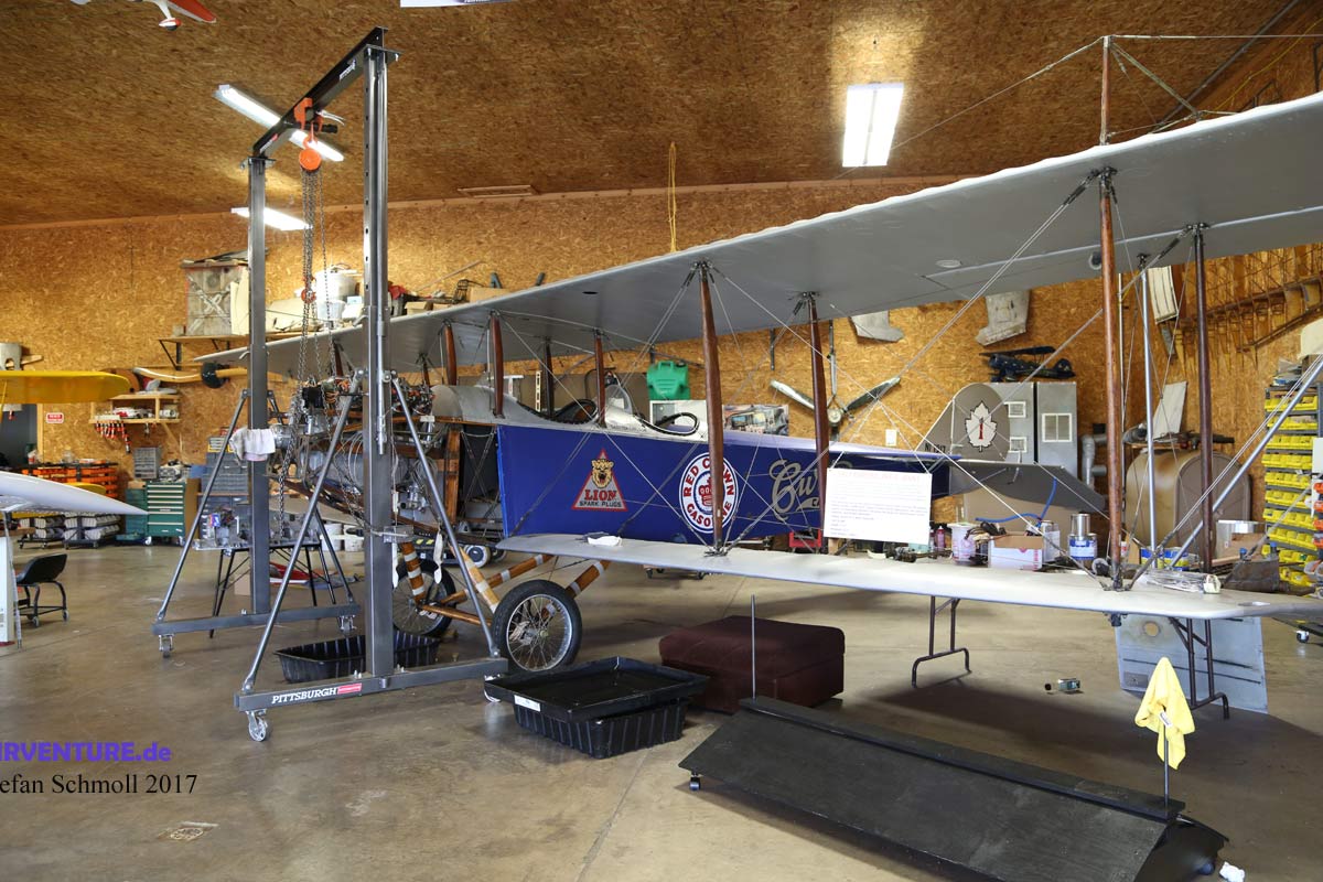Hier die berühmte Curtiss Jenny von 1917. Im Frühjahr 2018 dürfte sie nach erfolgter Motorrevision erstmals seit 2006 wieder in die Luft steigen.