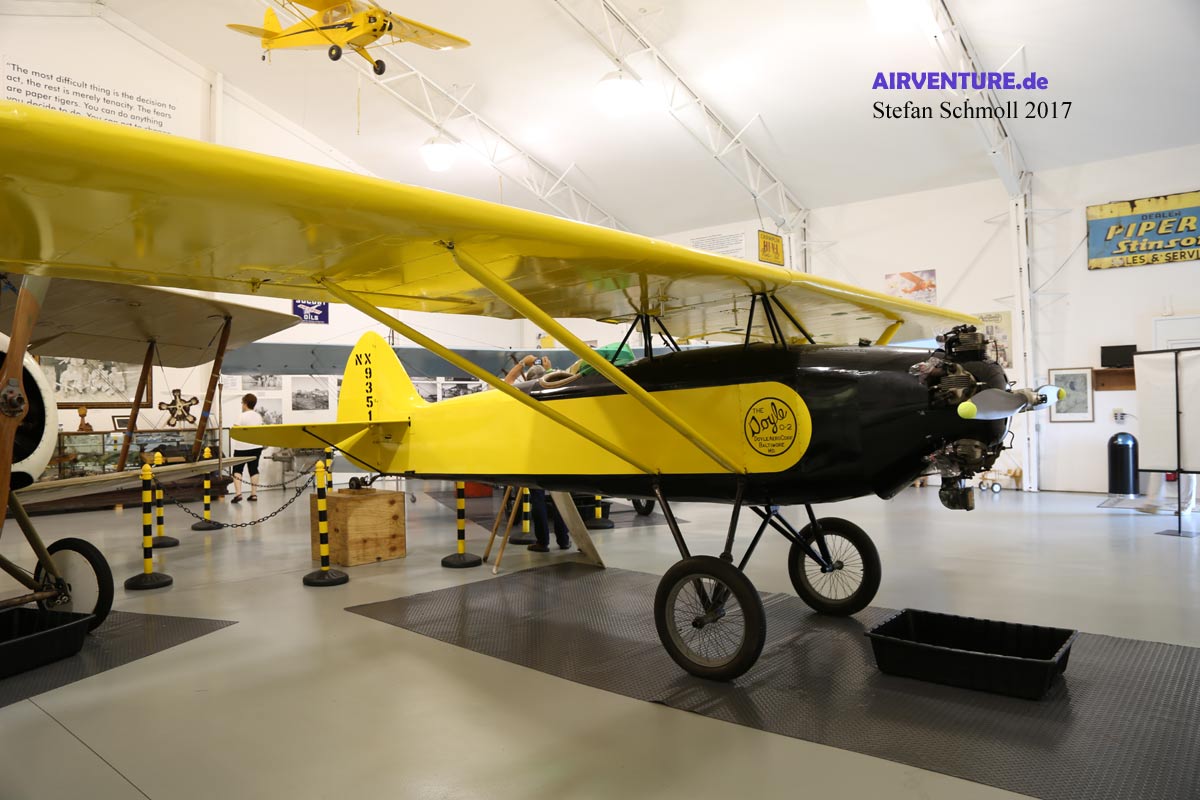 Ganze ACHT Flugzeuge baute die Doyle Aero Corporation Ende der zwanziger Jahre in Baltimore, bevor sie wie viele andere Firmen die "Große Depression" nicht überlebte. Die gezeigte Doyle O-2 Oriole (Pirol) ist passend zum Namen schwarz-gelb lackiert und als N9531 registriert. |