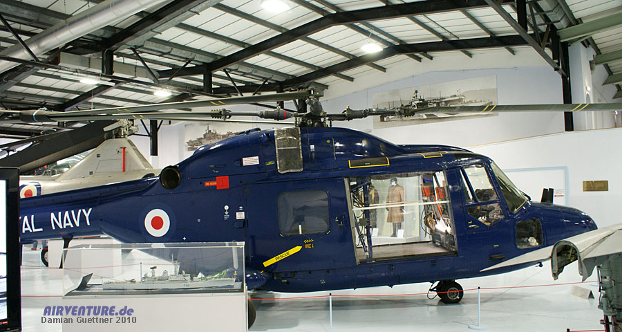 Eine schöne, glänzende Westland Lynx HAS3 mit der Zulassungsnummer XZ699. Dieser Typ hatte den Erstflug 1980 als HAS 2. Ab 5.11.1986 wurde diese Maschine in RNAS Yeovilton umgebaut zur HAS 3, was dazu geführt hat, dass der Hubschrauber später bei vielen Einheiten im Einsatz stand bevor er 2004 schließlich ins Museum kam. |
