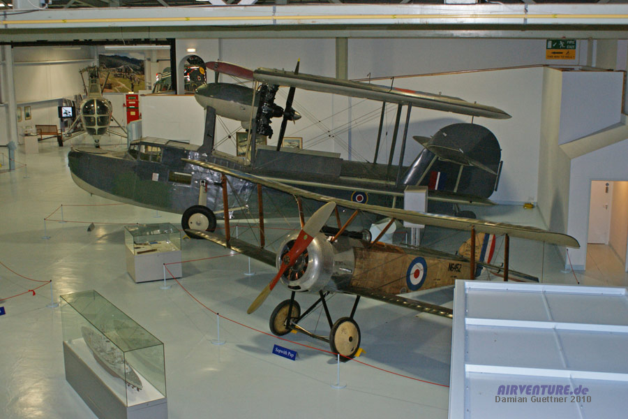 Die Ausstellungshallen präsentieren sich sehr sauber. Jede Halle ist einem bestimmten Thema gewidmet. Hier ist die Halle 1 mit der Replika einer Sopwith Pub und einer Supermarine Walrus zu sehen. |