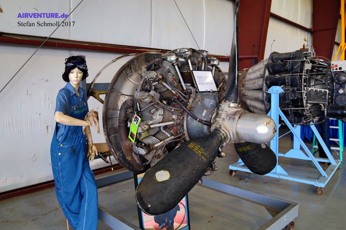 Nein, das ist nicht der fehlende Motor für die "Memphis Belle", sondern ein Teil der recht umfangreichen Motorensammlung des Museums in Geneseo. Der in der B-17 verbaute 9 Zylinder Wright R-1820 Sternmotor wurde in den verschiedensten Varianten zwischen 1931 und den frühen fünfziger Jahren produziert. |