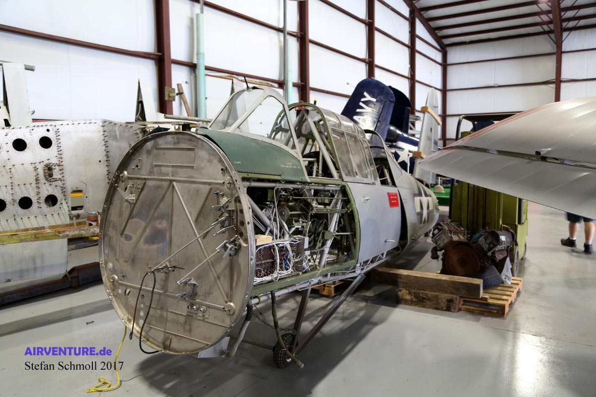 Auch Trainer werden gerade renoviert. Neben einer North-American T-6 steigt hoffentlich auch diese ungleich seltenere Vultee BT-13 Valiant wieder in den Himmel. |