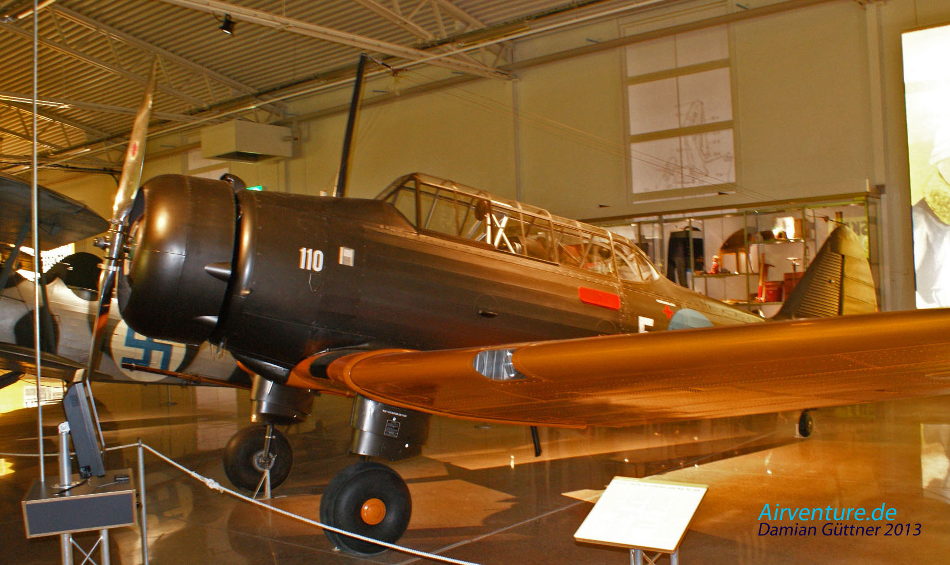 Eine Replika der North American Na 16, schwedische Bezeichnung Sk 14. Da keine der schwedischen Sk 14 überlebte, hat sich in den 70er Jahren eine Gruppe von Entusiasten gebildet um eine Sk 14 wieder zu rekostruieren. Der Rumpf und die Flügelenden stammen von einer australischen Wirraway, der Rest ist von einer kanadischen Yale, dazu fanden sich auch einige Orginalteile. Das Exponat wurde nach 27 ! Jahren Restaurierungsarbeit dem Museum am 17. Dezember 2003 übergeben.