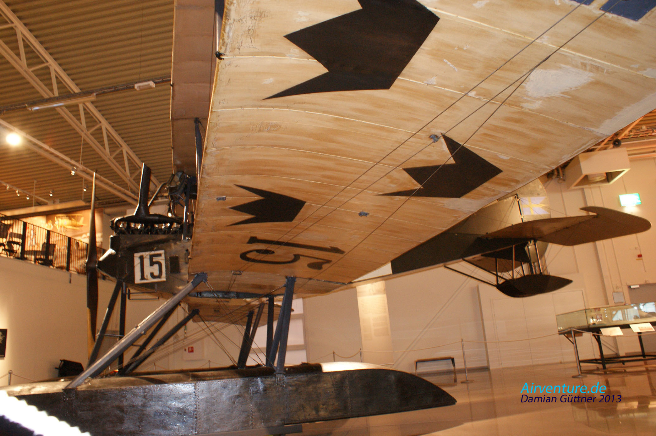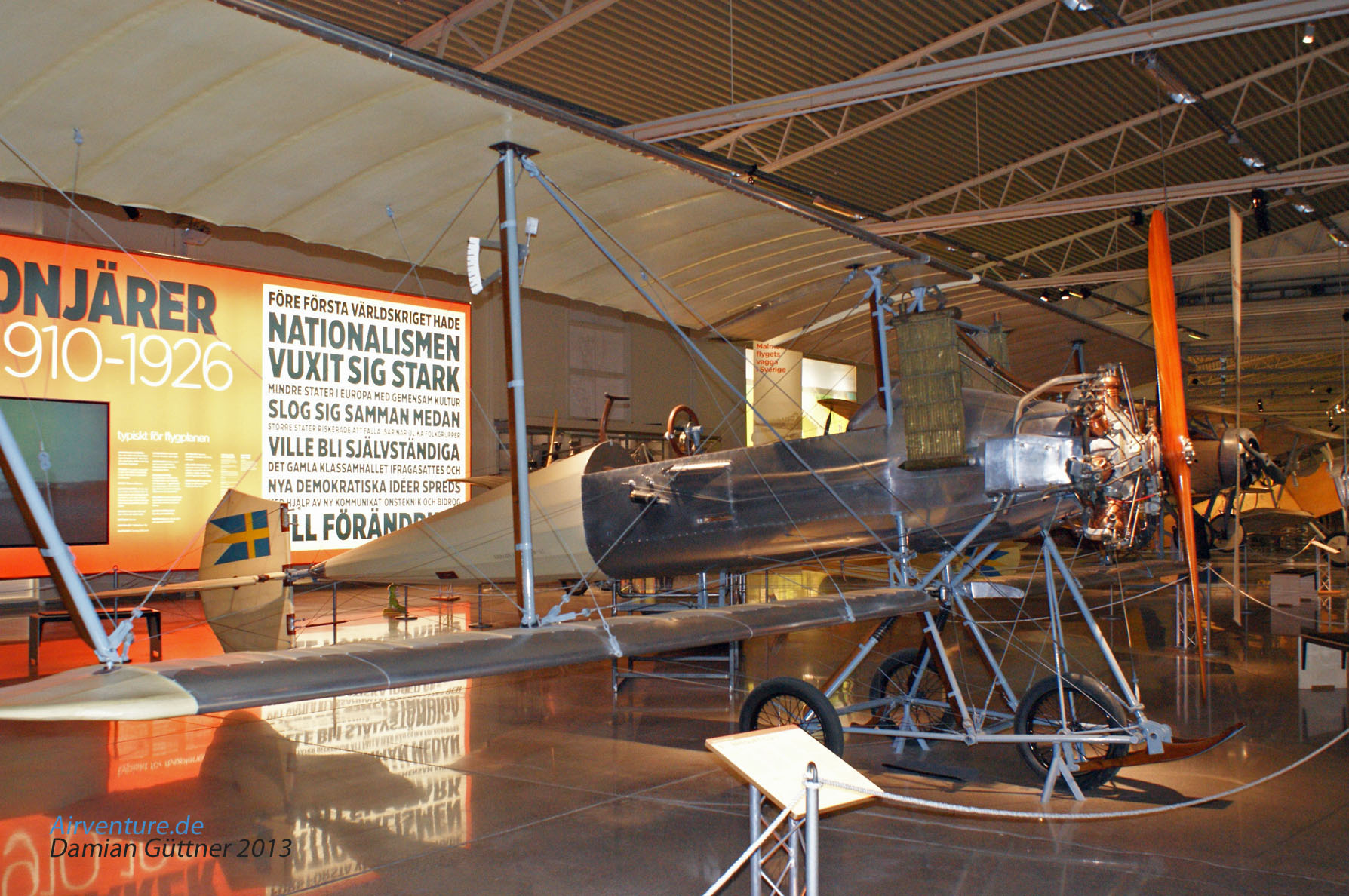 Das ist der seltsamste Flugaparat im Museum. Es handelt sich um das Breguet C.U1 Experimentalflugzeug aus dem Jahr 1912. Die Schwedische Luftwaffe kaufte nur ein Exemplar dieses Typs. Diese Maschine ist eine Replika mit Orginalteilen, wie Triebwerk, Leitwerk und ein Kühler. Der Rest wurde nach Bildern rekonstruiert und der ganze Bau dauerte 12 Jahre. Schließlich kam das Flugzeug im Februar 1989 ins Museum.