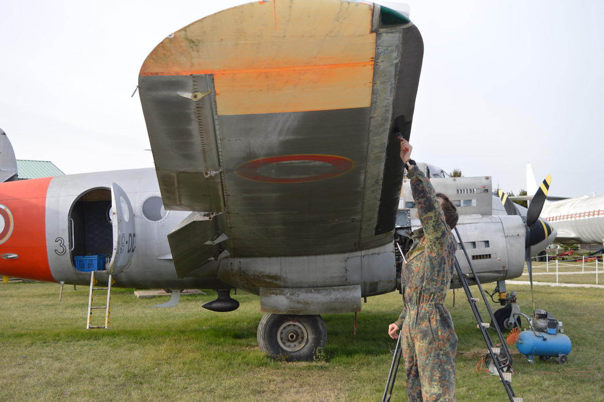 Regelmäßige Pflege bewahrt vor dem Verfall: Hier erhält eine Dassault MD.315 Flamant einen neuen schützenden Anstrich. |