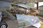 Ein abgenommenes Tail der Rumpfverkleidung gibt den Blick auf das Adour-MK.811 Triebwerk der SEPECAT Jaguar frei.
